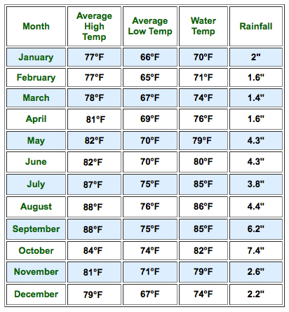 - Wet suit (3 mil is adequate and a shorty works well) from Dec - March, when water can be in the low 70s F (low 20s C). There are several dive shops that rent wet suits for about $10 per day, if you don’t want to buy and pack one (you would need to rent one for the week).